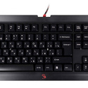 Состав: клавиатура • Назначение: настольный компьютер • Подключение: проводное (USB) • Конструкция: игровая • Цвет: черный • Количество клавиш: 104 • Кабели: клавиатура -