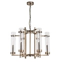 Подвесная люстра стиля модерн для гостиной, кабинета или спальни имеет размеры 610x1450 мм. Арматура светильника окрашена в бронзовый цвет. Лампы в комплекте - отсутствуют. В светильнике применяются лампы накаливания или светодиодная LED-лампа. Цвет плафонов - неокрашенный, с прозрачной поверхностью. Материал плафонов - стекло. Класс электробезопасности - I, степень пылевлагозащиты (IP) - 20. Максимальная мощность лампы (Вт) - 60. Светильник размещается на потолоке.