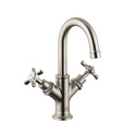 Назначение: для умывальника • Конструкция: с раздельными клапанами • Монтаж: горизонтальный • Материал: покрытие - никель • Монтажные отверстия: 1 отверстие • Форма излива: традиционная • Душевая лейка в комплекте: нет • Донный клапан в комплекте: есть