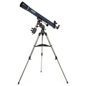 Мощный рефрактор-ахромат с объективом в 90 мм и фокусным расстоянием 1000 мм. Оптическая труба оснащена искателем StarPointer и установлена на экваториальной монтировке, а стальной штатив регулируется по высоте. Телескоп комплектуется двумя окулярами, оборачивающей призмой и программой-планетарием. Максимальное полезное увеличение составляет 180х.