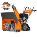 Самоходный гусеничный снегоуборщик, двухступенчатая система очистки, бензиновый двигатель, 15 л.с., ступенчатая трансмиссия, электростартер, рукоятки с подогревом, фара освещения