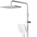Устройство: душевая система • Смеситель: термостатический • Ручной душ (душевая лейка): размер 120 мм, настройки 3 шт • Верхний душ (тропический): размер 220 мм, настройки 1 шт • Комплектация: ручной душ, верхний душ, смеситель, стойка, шланг, крепление ручного душа