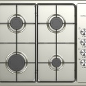 Поверхность: варочная панель • Тип поверхности: газовая • Рабочая поверхность: нерж.сталь • Число конфорок: 4 • Установка: независимая • Газовые конфорки: всего - 4 • Газ-контроль конфорок: есть • Тип управления: механическое • Переключатели: поворотные • Электроподжиг: есть, автоматический • Размеры: 580x550 мм • Цвет: панель - черный