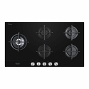 газовая на 5 конфорок • закаленное стекло • автоматический электроподжиг • газ-контроль • решетки: чугун • независимая установка • размеры (ШхГ): 90x51 см