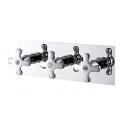 Назначение: универсальный • Конструкция: двухрычажный • Монтаж: вертикальный • Клапан: керамический • Материал: покрытие - хром • Подводка: жесткая • Монтажные отверстия: 2 отверстия • Форма излива: традиционная • Душевая лейка в комплекте: есть • Эксцентрики в комплекте: есть