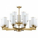 Подвесная люстра стиля модерн для гостиной, кабинета или спальни имеет размеры 920x1600 мм. Арматура светильника окрашена в латунный цвет. Лампы в комплекте - отсутствуют. В светильнике применяются лампы накаливания или светодиодная LED-лампа. Цвет плафонов - белый, с матовой поверхностью. Материал плафонов - стекло. Класс электробезопасности - I, степень пылевлагозащиты (IP) - 20. Максимальная мощность лампы (Вт) - 40. Светильник размещается на потолоке.