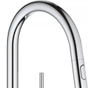 Долго и пристально выбирал смеситель на кухню между несколькими европейскими производителями. Остановились на этой модели, т. к., во-первых, у неё отличный и стильный внешний вид (коллекции других производителей мне не понравились внешне - либо были слишком вычурными, либо не подходили по стилю к нашей кухне), во-вторых, хотелось иметь выдвижную лейку (удобно ополаскивать раковину после мытья посуды: главное включить напор побольше и переключить на режим лейки). Ну и, разумеется, качество: Grohe - есть Grohe, к тому же кухонные смесители у них собираются в Португалии. Все детали очень аккуратно упакованы. Монтаж занял минут 15. Инструкция и ключ - в комплекте. Изначально были сомнения - не слишком ли уж толстый смеситель. Ответ - нет. То, что надо: бросается в глаза, но при этом выглядит стильно, а не вычурно. Заказывали через интернет-магазин (но предварительно "щупали" в обычном магазине). Недостатков для себя на находим (используем полгода), но есть особенность. Если открыт совсем (!) слабый напор воды, то на душ переключиться не удастся. Но при слабом напоре душ и не нужен: чтобы ополоснуть раковину, я включаю напор на полную мощность, а чтобы помыть посуду достаточно среднего напора. И всё работает отлично. И ещё момент - при опять-таки слабом напоре (когда чуть-чуть приоткрыли рычаг), то смеситель издают жужжащий звук. Но то же самое происходит и с любым другим смесителем. Специально прислушивался. И, конечно, любой хромированный смеситель любой фирмы надо протирать - чтобы он блестел. У этой модели от воды пачкается только основание с рычагом и реже - носик. На на сам длинный излив вода не попадает. Опять-таки - удобно.