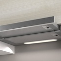 конструкция телескопическая • монтаж для встраивания • ширина 59.8 см • управление механическое/кнопочное • производительность мотора 650 м³/ч • цвет нержавеющая сталь