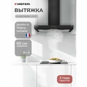 конструкция Т-образная • монтаж настенный • ширина 60 см • управление механическое/кнопочное • производительность мотора 650 м³/ч • цвет черный