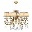 Подвесная люстра стиля флора для гостиной, кабинета или спальни имеет размеры 740x1730 мм. Арматура светильника окрашена в золотой цвет. Лампы в комплекте - отсутствуют. В светильнике применяются лампы накаливания или светодиодная LED-лампа. Цвет плафонов - кремовый, неокрашенный, с матовой, прозрачной, рельефной поверхностью. Материал плафонов - текстиль, хрусталь. Класс электробезопасности - I, степень пылевлагозащиты (IP) - 20. Максимальная мощность лампы (Вт) - 40. Светильник размещается на потолоке.