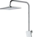 Устройство: душевая система • Смеситель: джойстик • Ручной душ (душевая лейка): размер 85 мм, настройки 2 шт • Верхний душ (тропический): размер 290 мм, настройки 1 шт • Комплектация: ручной душ, верхний душ, смеситель, стойка, шланг, крепление ручного душа
