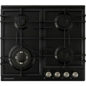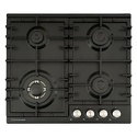 Поверхность: варочная панель • Тип поверхности: газовая • Рабочая поверхность: эмаль • Число конфорок: 4 • Установка: независимая • Газовые конфорки: всего - 4 (1 конфорка "Тройная корона") • Газ-контроль конфорок: есть • Тип управления: механическое • Переключатели: поворотные • Электроподжиг: есть, автоматический • Размеры: 580x510x100 мм • Размер ниши для встраивания: 560x490 мм • Цвет: панель - черный