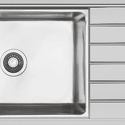 Форма чаши: квадратная • Материал: нерж. сталь • Количество чаш: 1 основная • Установка: врезная • Крыло: есть, расположение на выбор • Глубина чаши: 21.5 см • Измельчитель пищевых отходов: нет • Размеры: 86x50 • Мотажное отверстие: 86x50 • Диаметр сливного отверстия: 3 "
