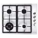 Поверхность: варочная панель • Тип поверхности: газовая • Рабочая поверхность: эмаль • Число конфорок: 4 • Установка: независимая • Газовые конфорки: всего - 4 (1 конфорка "Тройная корона") • Газ-контроль конфорок: есть • Тип управления: механическое • Переключатели: поворотные • Электроподжиг: есть, автоматический • Размеры: 580x500x48 мм • Размер ниши для встраивания: 560x480 мм • Цвет: панель - белый